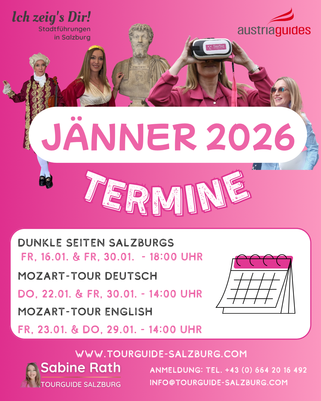 Es ist wieder soweit, die öffentlichen Termine für die Spezialführungen im Jahr 2026 sind da und somit buchbar unter info@tourguide-salzburg.com oder direkt über die Website!