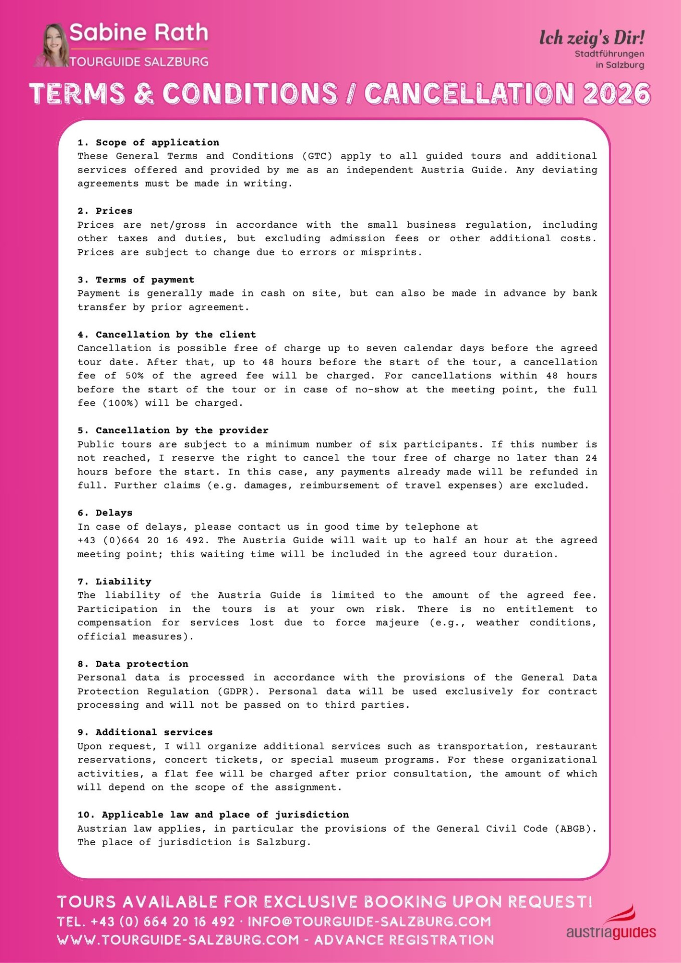 Immerse yourself in a sea of fascinations and sights that the city and countryside have to offer. Accept the invitation to explore Salzburg and its idyllic surroundings with me. Gather your own individual impressions. I would like to introduce you to the history, culture and beauty of our country in a charming, entertaining and at the same time informative way.